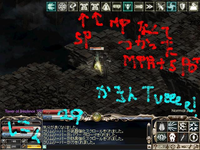 CHA型も卒業し、元のINT型に戻りました。TIクエでもpkでも常にmrが100以下しかなく不安ですた・・